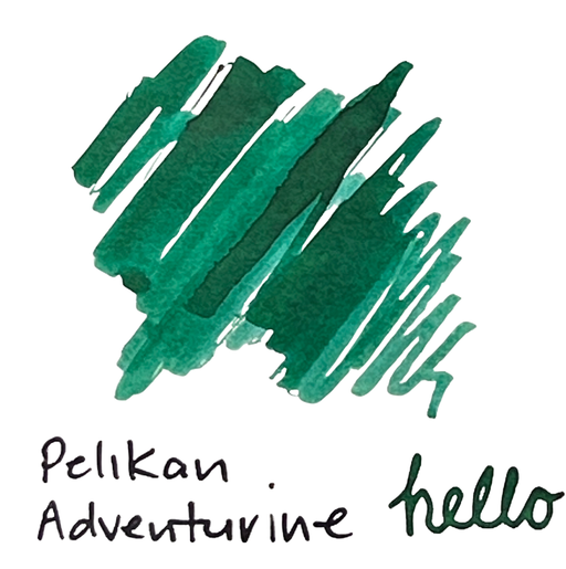 This is a sample of Pelikan Edelstein Adventurine fountain pen ink. A rich, forest green. Inspired by the Adventurine gemstone, this ink shows shad...