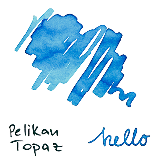 This is a sample of Pelikan Edelstein Topaz fountain pen ink. A vibrant turquoise blue. Inspired by the Topaz gemstone, this ink shows shading prop...