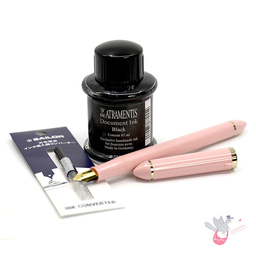 SAILOR Sketch Kit (Fude, Converter, DA Permanent Black, Blunt Syringe) - 40 Degree - Pink