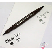 In one end the pigment ink is very black and the other end is a lovely light grey - both colours water-resistant (ink doesn't move when exposed to water). A great brush pen for urban sketching.