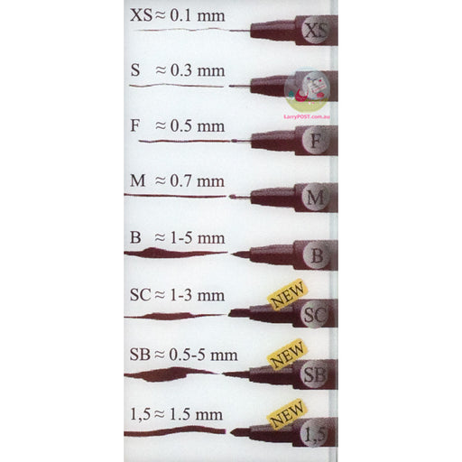 View full detailsFABER-CASTELL Pitt Artist Pen - 8 (XS, S, F, M, B, SC, SB, 1.5) - Black