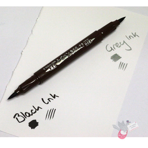 View full detailsSAILOR Fude Keitai Double-Sided Brush Pen - Medium - Brown Body - Black and Grey Permanent Ink