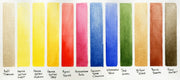 12 Color HAND POURED Watercolor Half Pan Set in a Metal Box is filled with beautiful DANIEL SMITH Watercolors. The set includes split (cool & warm) primary colors, a gorgeous secondary green, and 4 earth colors all in a convenient, sturdy Metal Box ready for the studio, coffee shop and on-the-go trips anywhere!