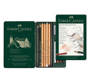 - Set includes 1 Castell 9000 2B graphite pencil, 1 Pitt Graphite Pure pencil 6B, 1 Pitt artists' natural charcoal pencil medium, 2 Pitt Oil Base artists' pencils (black medium, sanguine), 2 Pitt Pastel pencils (walnut brown, white soft), 4 Pitt Pastel crayons and 1 kneadable eraser