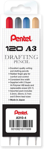 PENTEL 120 A3 DX Drafting Pencil - SET OF 4 - 0.3/0.5/0.7/0.9mm