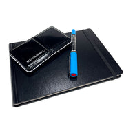 Vertical elastic, ribbon bookmark and artist's secret pocket inside back cover.