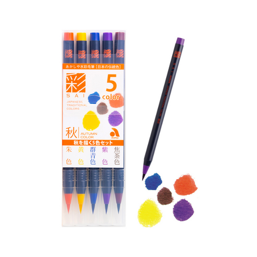 View full detailsAKASHIYA SAI Watercolour Brush Marker - 5 Colour Set C - Autumn
