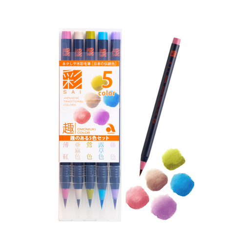 View full detailsAKASHIYA SAI Watercolour Brush Marker - 5 Colour Set - Elegant (Omomuki Colour)