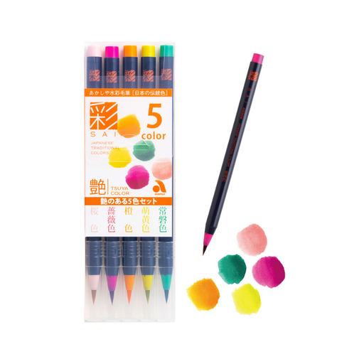 View full detailsAKASHIYA SAI Watercolour Brush Marker - 5 Colour Set - Luster (Tsuya Colour)