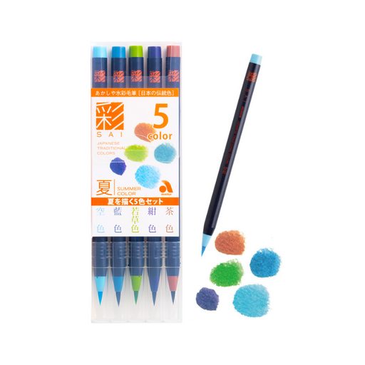 View full detailsAKASHIYA SAI Watercolour Brush Marker - 5 Colour Set - Summer