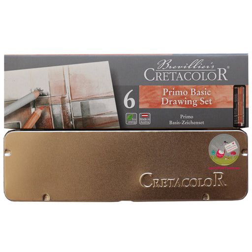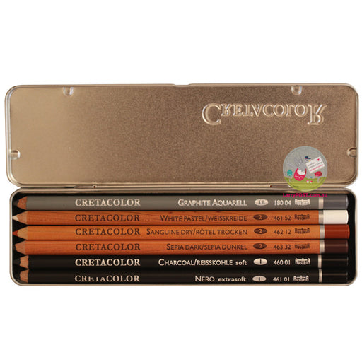 The Basic Pencils Pocket Set features 6 Cretacolor sketching pencils, 1 each of charcoal, Nero soft (2B), 4B graphite aquarell, sepia dark, sanguin...