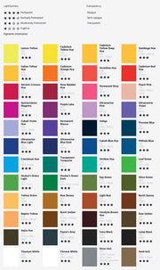 Pigment-based inks, that unlike dye-based inks, resist fading over time. Contain gum arabic and behave more like watercolours. Use diluted like transparent watercolour or at full strength like opaque gouache. Can be applied directly using the included dropper or by using synthetic brushes, empty paint markers (available separately), technical pens or airbrushes. As an ink, get lovely crisp edges as they dry. Can be rewet once dry, but not as easy to lift as traditional watercolours.