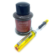 TWSBI Eco Sketch Kit - Clear / Transparent Yellow - Fine Nib & DE ATRAMENTIS Document Ink - Brown - 45mL