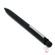 Multi-system pen in a matt black finish. Fitted with ballpoint pen refill LAMY M21 black and propelling pencil lead 0.5 (LAMY M41) HB. With system identification ring and built in eraser (LAMY Z 15) underneath the removable button.