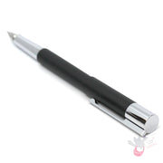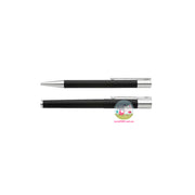 Available as a fountain pen with cap and as a twist-action ballpoint pen in matt black/chrome.