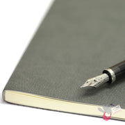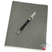 Paper: Ivory coloured premium recycled paper, Acid free, Neutral pH, FSC Certified, Chlorine free, fountain pen friendly. 85 gs/m