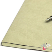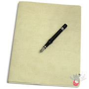 Paper: Ivory coloured premium recycled paper, Acid free, Neutral pH, FSC Certified, Chlorine free, fountain pen friendly. 85 gs/m