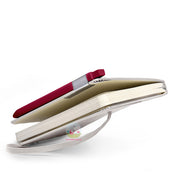 Burgundy Red Ballpoint pen with retractable point. Clips onto the notebook, becoming its natural travelling companion. Contains ink specifically designed for MOLESKINE notebooks.