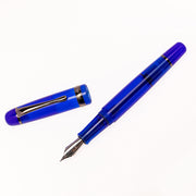 OPUS 88 Holiday Jazz Fountain pen. A translucent blue body with gunmetal trim.
