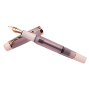 OPUS 88 Mocha Mousse Fountain pen. Be prepared for people to ask you about this pen - it's a very funky mix of cream and transluscent purple acrylic accompanied by rose gold plated trims and nib.