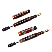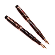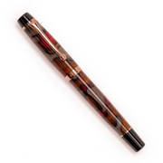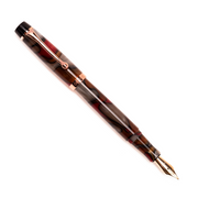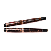 OPUS 88 Harmony Fountain pen in vintage inspired pattern of red and grey acrylic, with rose gold coloured nib and trim.