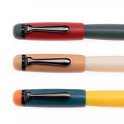 The pen is filled with the supplied eyedropper and uses a piston operated shut-off valve to seal the barrel when travelling or flying. When writing for exteded periods of time release the piston to enable ink flow to the feed and nib.