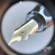 Fitted with a size #15 14K gold nib, there is enough nib length that you barely need to move your hand for the pen to reach the page. Combined with the vacuum filling mechanism and high ink capacity, this model is designed to be a workhorse. Fill it up and you will be writing for many weeks before needing to refill.