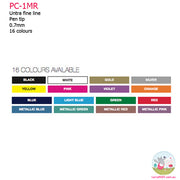 PC-1MR is a 0.7mm fine line for ultra-fine lines. Same qualitities as the POSCA paint markers ... but in a pen with a metal tip that give finer control than the PC-1M marker that has a felt tip. This metal tip pen is popular with graphic designers to produce technical drawings and rough sketches. Also ideal for urban sketching to add highlights over the top of dry watercolour such as white caps on ocean waves