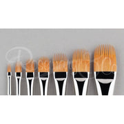 Commonly called 'Nylon', Golden Synthetic has some unique characteristics in that its retention, snap and spring are all superb. They are 100% Vegan Friendly. The Series 2230's quirky head shape allows a much more open, separated stroke and is a much stronger in construction to the Series 2250 or Series 2240 as those ranges may clog up in Oils and Acrylic paints. A favourite for ceramic artists wanting to create texture, also for beards and hair in portrait painting. Size measurement is brush head diametre by brush length (mm).