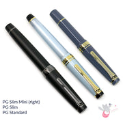 The PG Slim Mini is the smallest of the pens in the Professional Gear range. Designed to be a convenient, take anywhere, fit in the pocket or purse, fountain pen. Series 2 has a push on design for the cap when posting and a matching colour PMMA grip section.