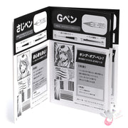 5 different nibs, 1 x nib holder, 5ml of Jet black manga ink, 4 x drawing card templates, instructions (Japanese).