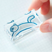 The transparent stamp "Kori Jirushi" perfectly stamps the targeted area. All parts are made of transparent material, so you can directly view the stamping surface from above and finely adjust the position. It's ideal for meticulous decorations on planners and gift cards. The fun increases dramatically when you change the ink color and combinations. Even if ink gets on the handle, it's made of acrylic and doesn't stain, allowing for easy cleaning with just a quick wipe.