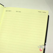Page format: Index, perpetual monthly planner, ruled pages and contact lists