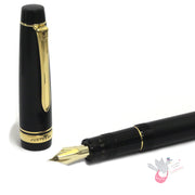 PILOT Justus 95 Fountain Pen (14ct Gold Adjustable Nib and Con-70) - Pinstripe Design - Black - Fine Nib