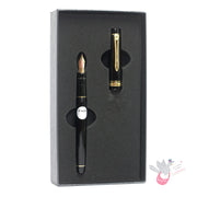 Body is heavy weight steel decorated in iridescent pinstriped black lacquer - a stylish change from an all black fountain pen.