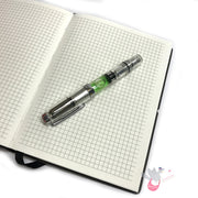 Paper: Ivory coloured premium recycled paper, Acid free, Neutral pH, FSC Certified, Chlorine free, fountain pen friendly. 85 gs/m