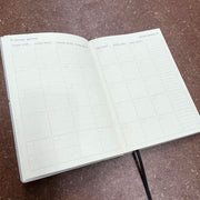 Features: Horizontal elastic enclosure, ribbon page marker, thread bound