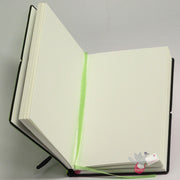 Features: Horizontal elastic enclosure, ribbon page marker, thread bound