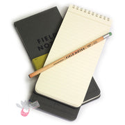 FIELD NOTES have taken the best of all the reporter notebooks out there and combined them into the most useful notebook for capturing the killer quote. Wiro bound, designed to lay flat, and slightly narrower in the hand, these reporter notebooks will be the goto notebook in the office. Also contains a pocket in the back for keeping the secret phone numbers of your information sources.