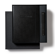 This Bullet Journal Stealth Collector’s Set is a limited design edition and combines three products in an exclusive gift box: the official Bullet Journal®® Notebook, the Twist Pen No. 1 with black gel lead and the self-adhesive Pen Loop. Each of the three products is in black, tone-on-tone. Light reflection reveals the design elements such as relief printing, gloss varnish, black side cut and embossing.