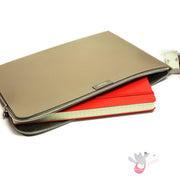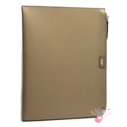 Cover Material: Bonded leather with a saffiano finish in 4 colours. Bonded leather is a reconstitued leather to give the look and feel of leather without the natural variation of genuine leather. Metal zipper