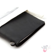 Starter kit contains 1 x Black leather cover, blank notebook refill, spare rubber band. Packaged in a cotton bag.