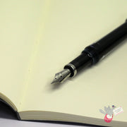 Paper: Ivory coloured premium recycled paper, Acid free, Neutral pH, FSC Certified, Chlorine free, fountain pen friendly. 85 gs/m