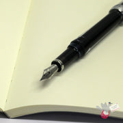 Paper: Ivory coloured premium recycled paper, Acid free, Neutral pH, FSC Certified, Chlorine free, fountain pen friendly. 85 gs/m