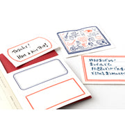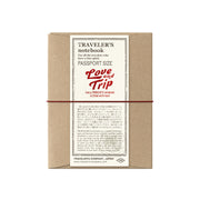 The refill features a red cover with a LOVE AND TRIP-themed design stamped in foil. In addition to MD PAPER Cream inside, which is excellent for writing, a letterpress-printed message card page is included.