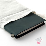 Starter kit contains 1 x blue leather cover, blank notebook refill, spare rubber band. Packaged in a cotton bag.