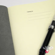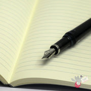 Paper: Ivory coloured premium recycled paper, Acid free, Neutral pH, FSC Certified, Chlorine free, fountain pen friendly. 85 gs/m