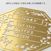 This brass template allows you to easily draw illustrations in your diary or notebook by simply tracing it with your favorite pen. In addition to cute animals and easy-to-use motifs, you can also write titles and to-do lists. It is designed to be completed as an illustration on one sheet. It is also recommended for arranging sticky notes and memos. You can trace only the parts you need or arrange them in your favorite colors, so the range of uses is wide. The back is treated with an anti-slip coating to prevent it from slipping when writing. The main body is made of brass and is very thin at 0.4 mm, so it does not get in the way when you carry it between your diary or notebook.