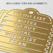 This brass template allows you to easily draw illustrations in your diary or notebook by simply tracing it with your favorite pen. In addition to cute animals and easy-to-use motifs, you can also write titles and to-do lists. It is designed to be completed as an illustration on one sheet. It is also recommended for arranging sticky notes and memos. You can trace only the parts you need or arrange them in your favorite colors, so the range of uses is wide. The back is treated with an anti-slip coating to prevent it from slipping when writing. The main body is made of brass and is very thin at 0.4 mm thick, so it does not get in the way when you carry it between your diary or notebook.