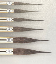 This specialised Rigger brush was developed by Rosemary on behalf of renowned watercolourist, Sandra Strohschein. It has squirrel and synthetic sable at the base to hold a vast amount of water and pigment, then an extended synthetic point 'to carry on a line forever'.